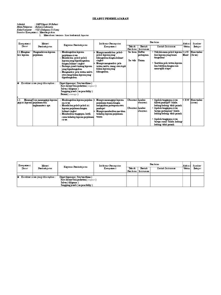 Silabus bahasa indonesia kelas 8 merupakan perangkat pembelajaran yang berisi mengenai mata pelajaran b.